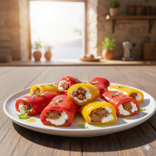 Involtini di peperoni con salsiccia e crema di formaggio fresco