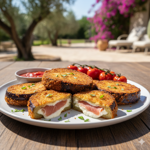 Cordon bleu di melanzane con formaggio fresco e prosciutto crudo