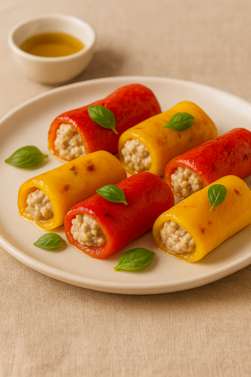 Involtini di peperoni con salsiccia e crema di formaggio fresco